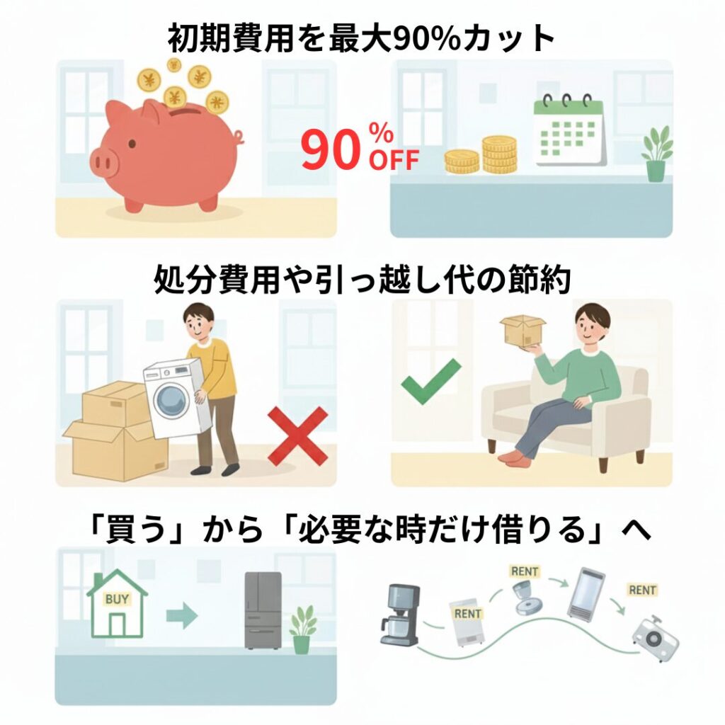 手元の資金を無理に削ることなく、余裕を持って生活をスタートできるのは、レンタルならではの大きな安心感といえます。