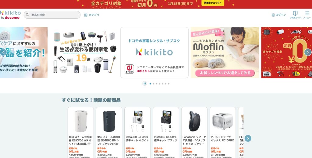 ドコモが運営する「kikito(キキト)」は、最新のデジタルデバイスや美容家電に特化したレンタルサービスです。