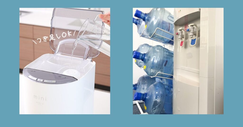 一方の浄水型は、家庭の水道水を専用フィルターでろ過して使用するため、ボトル配送や管理の手間がほとんど不要。