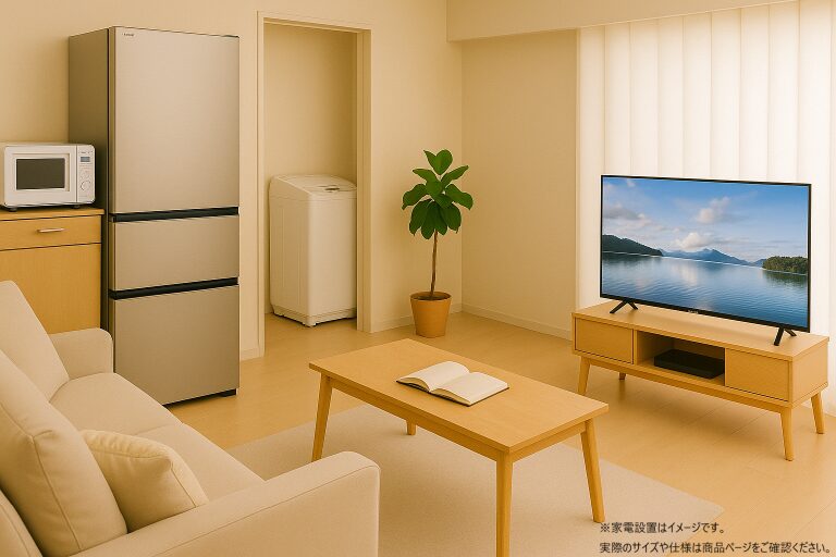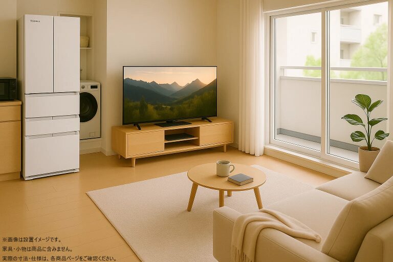 たとえば、一人暮らし用のセットには省スペースな冷蔵庫&洗濯機が選ばれていたり、ファミリー向けには大型テレビや大容量の冷蔵庫が組み込まれていたり。