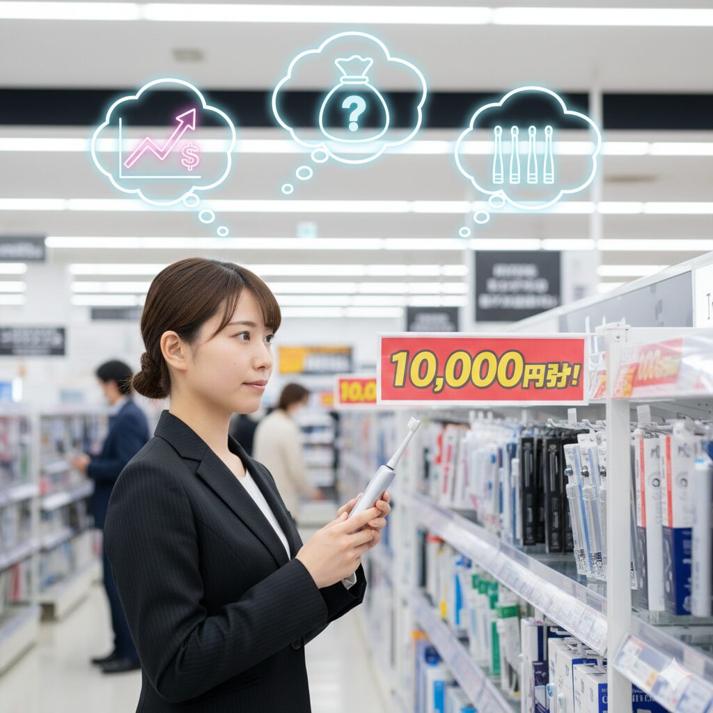 最近、家電量販店の電動歯ブラシコーナーに並ぶ数万円のモデルを眺めて、